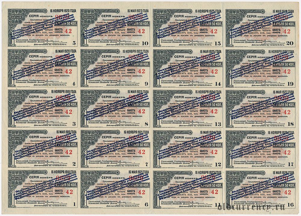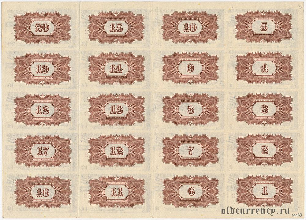 Сибирский революционный комитет, надпечатка на купонах, лист из 20 шт.