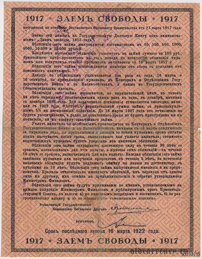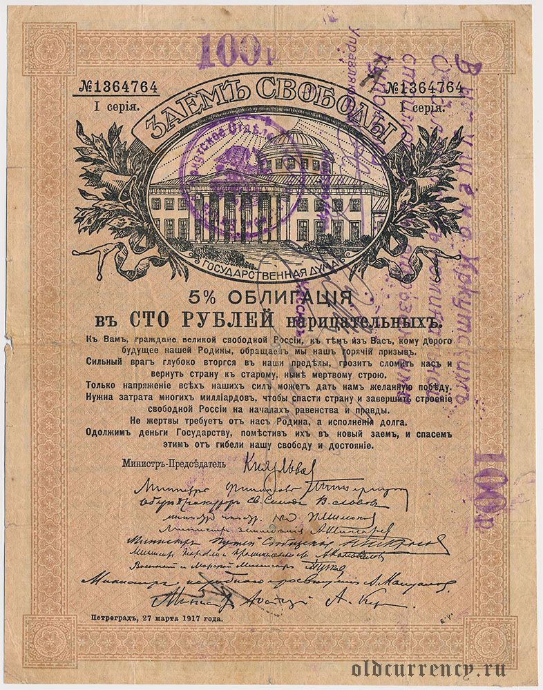 Иркутск, надпечатка на 100 рублях Займа Свободы
