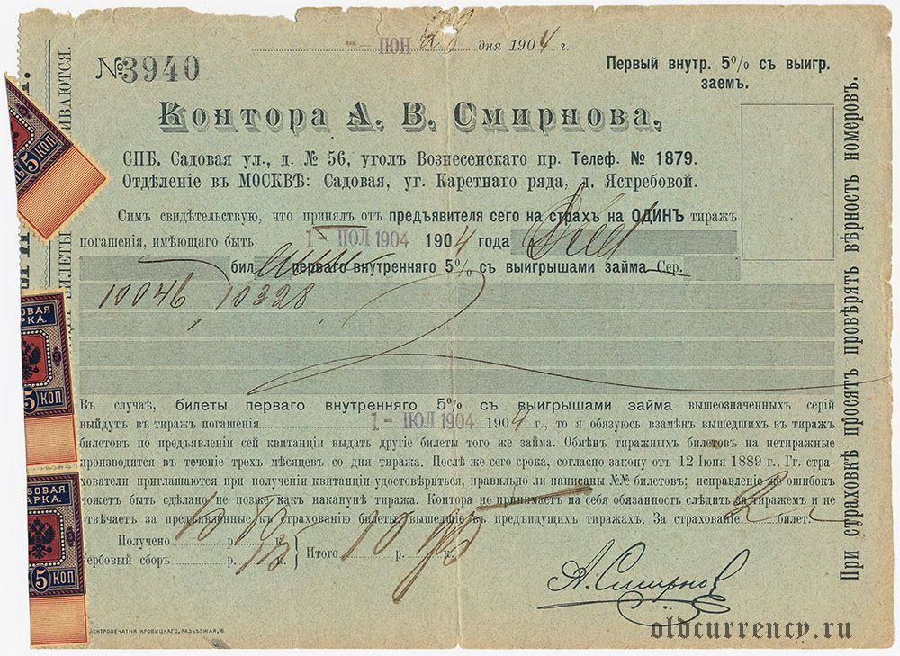 Контора А.В. Смирнова, страховое свидетельство 1904 года