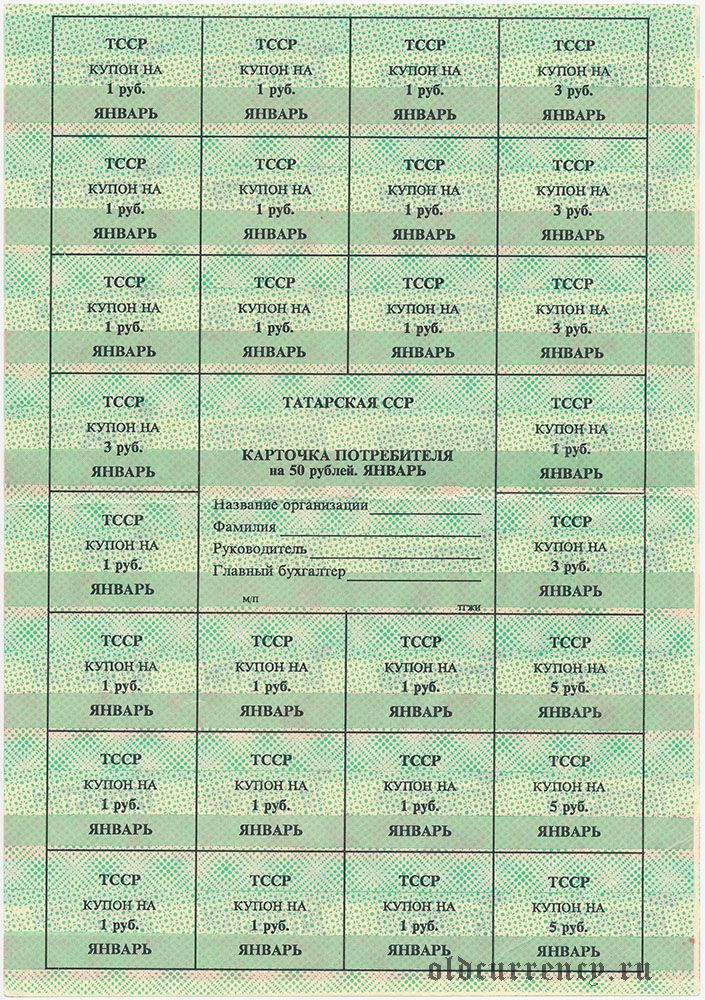 Татарская ССР, карточка потребителя, январь, 50 рублей