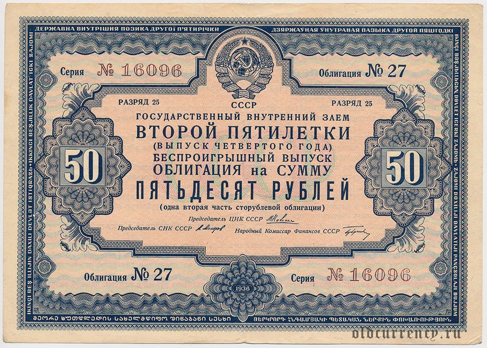 Заем Второй Пятилетки, 50 рублей 1936 года