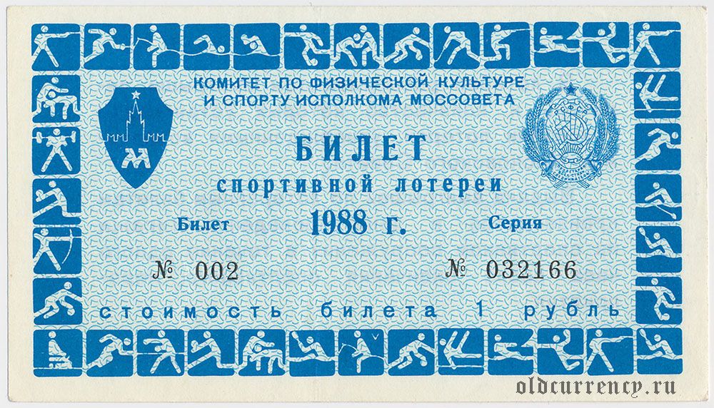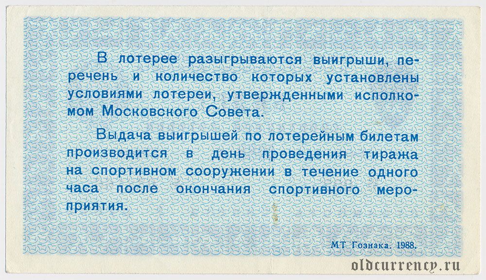 Москва, спортивная лотерея Моссовета 1988 года