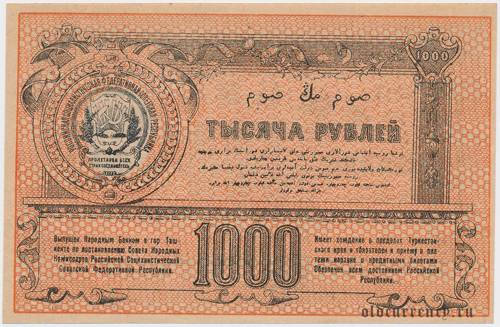 Туркестан, 1000 рублей 1920 года, в.з. "связанные звезды"