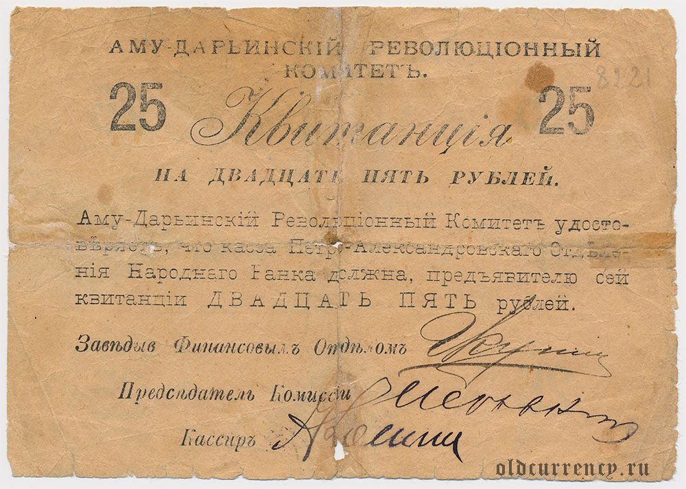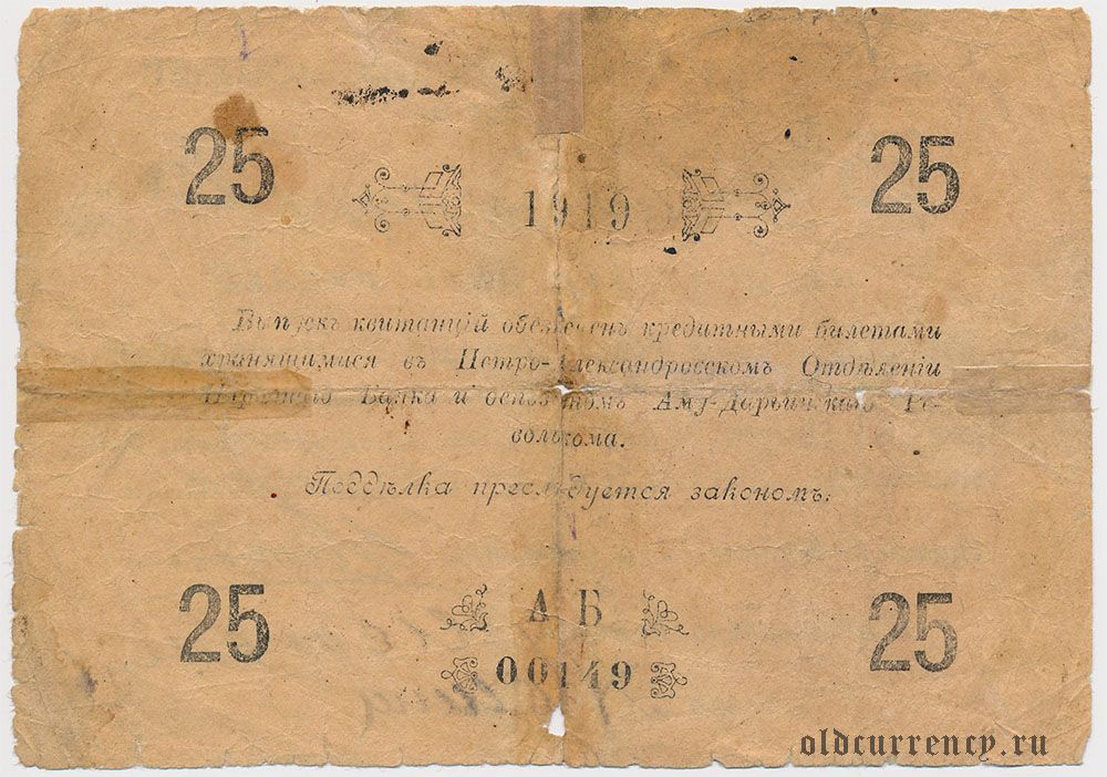Петро-Александровск, Аму-Дарьинский революционный комитет, 25 рублей 1919 года