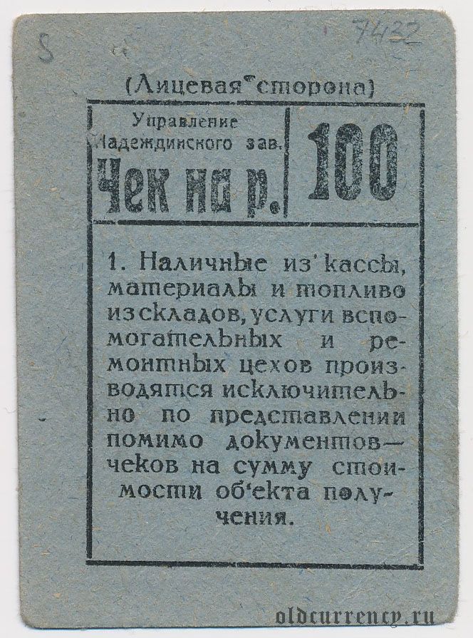 Надеждинск, управление Надеждинского завода, 100 рублей
