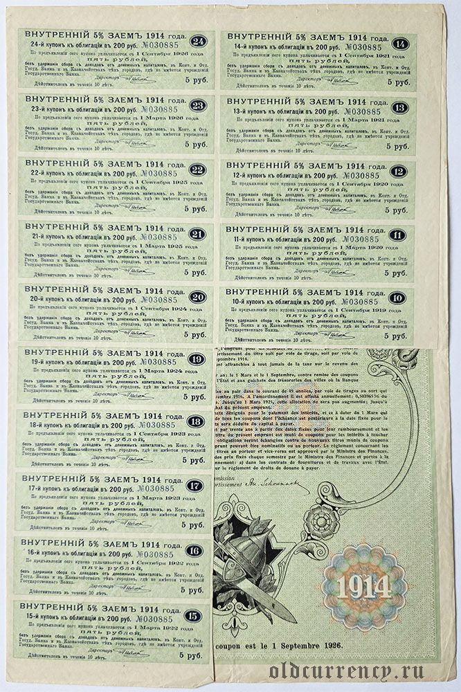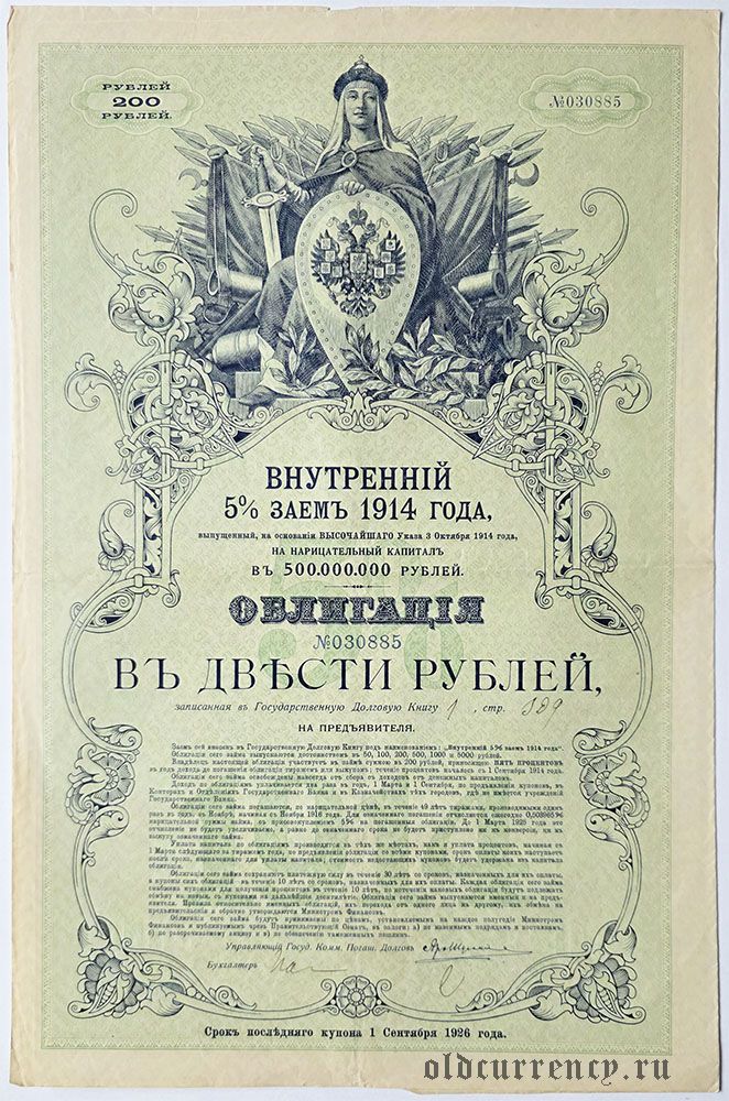 Внутренний 5% Заем, 200 рублей 1914 года