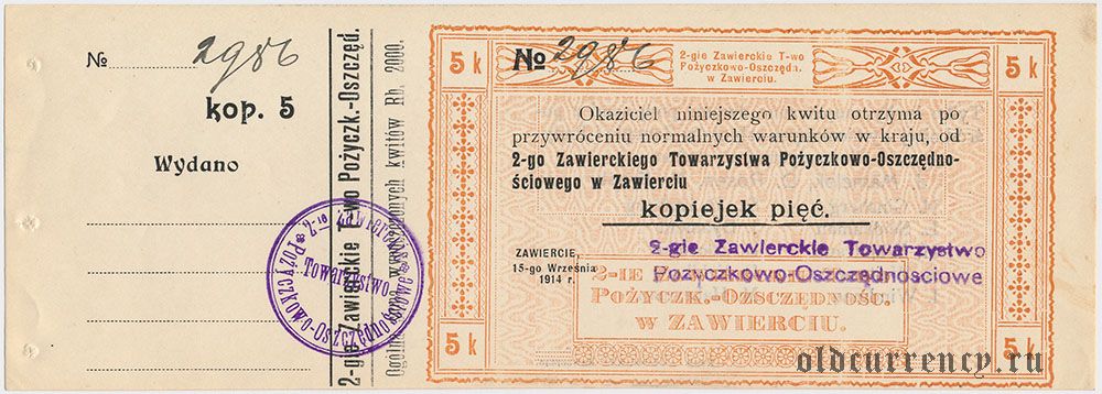 Польша, Заверце (Zawiercie), 5 копеек 1914 года