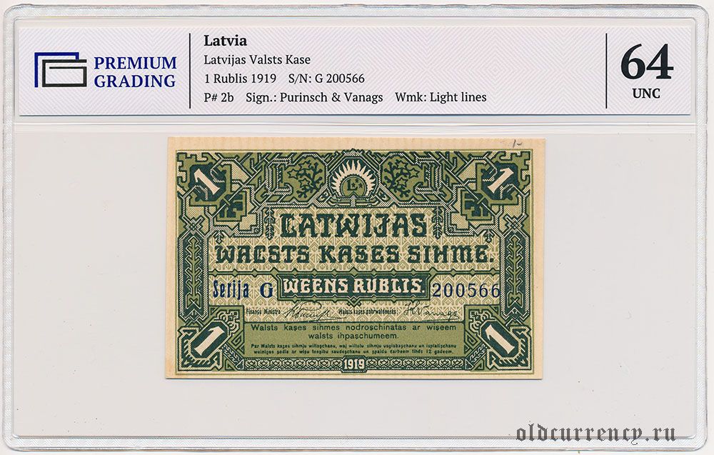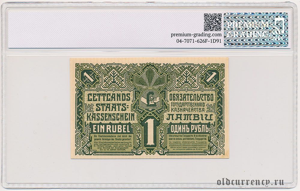 Латвия, 1 рубль 1919 года. Serija G. В слабе PG