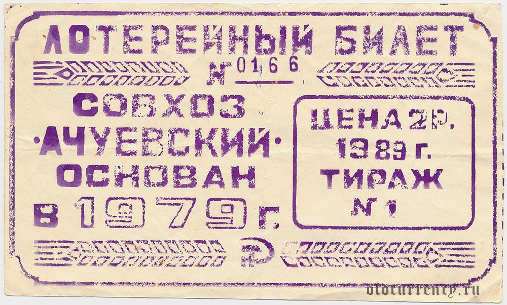 Совхоз "Ачуевский", лотерея 1989 года