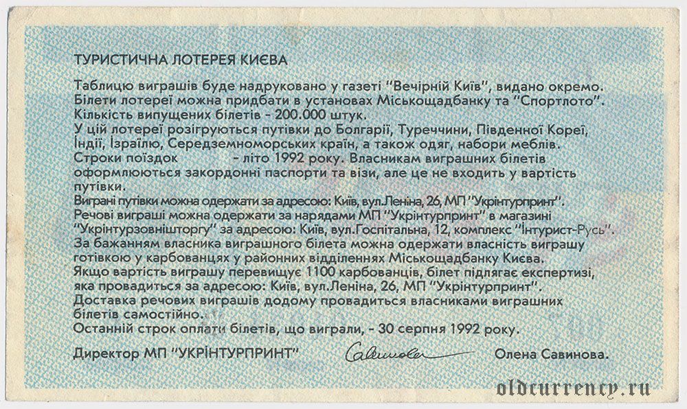 Киев, туристическая лотерея 1992 года, 6 разряд
