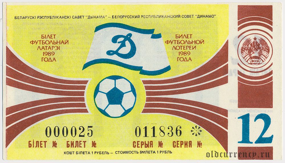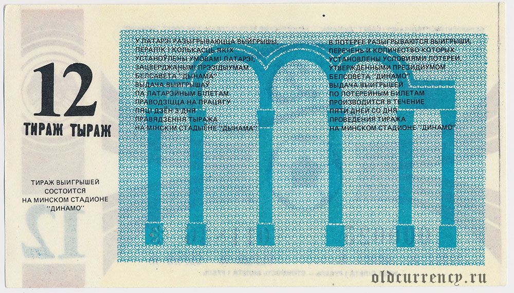 Белорусский республиканский совет "Динамо", футбольная лотерея 1989 года, 12 тираж