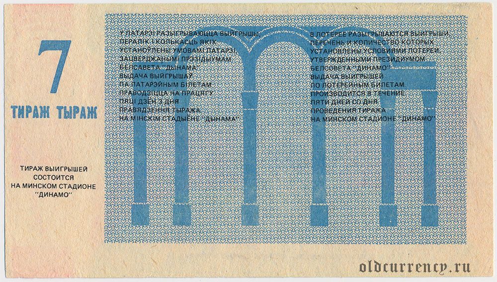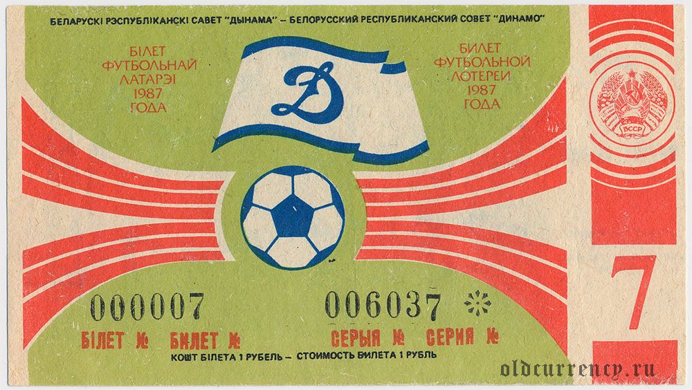 Белорусский республиканский совет "Динамо", футбольная лотерея 1987 года, 7 тираж