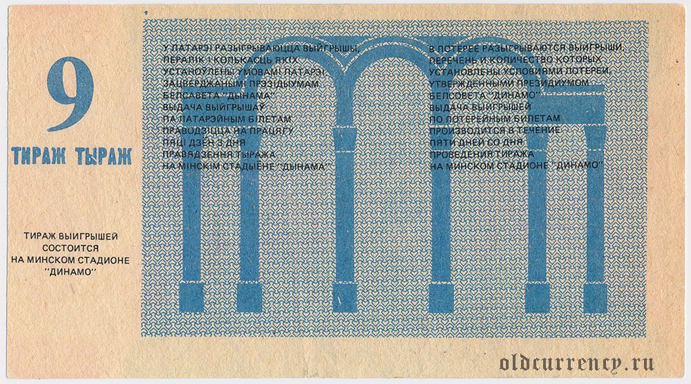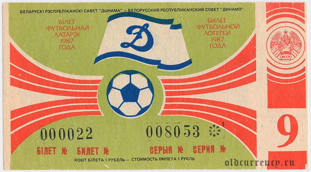Белорусский республиканский совет "Динамо", футбольная лотерея 1987 года, 9 тираж