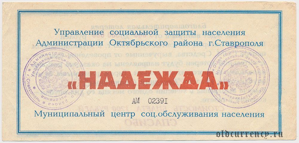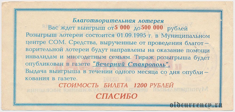 Ставрополь, "Надежда", благотворительная лотерея 1995 года