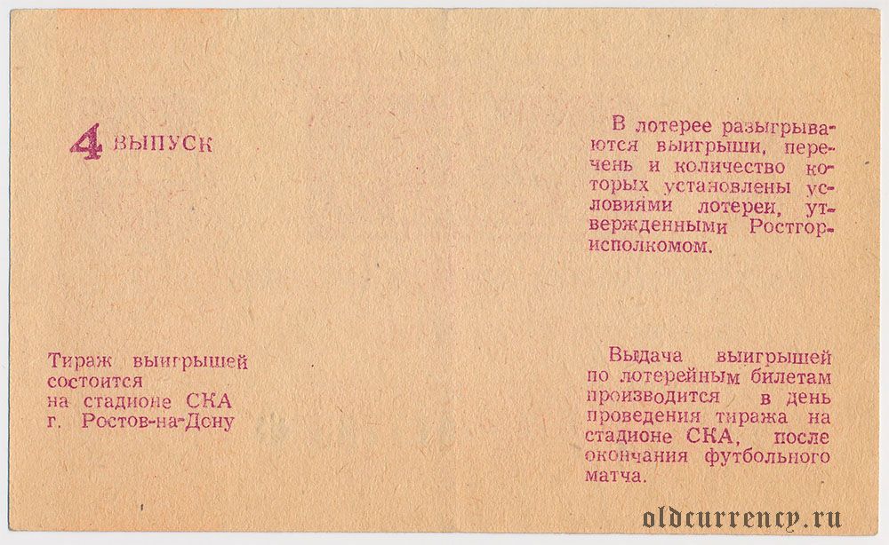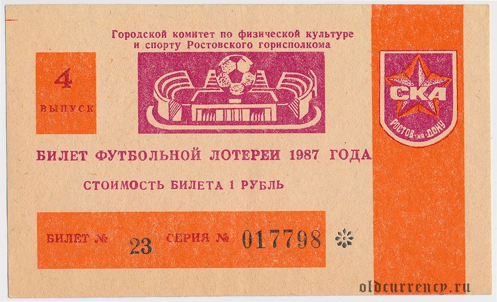 Ростов-на-Дону, СКА, футбольная лотерея 1987 года, 4 выпуск