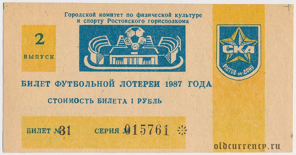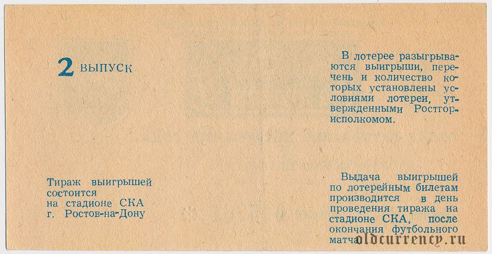 Ростов-на-Дону, СКА, футбольная лотерея 1987 года, 2 выпуск