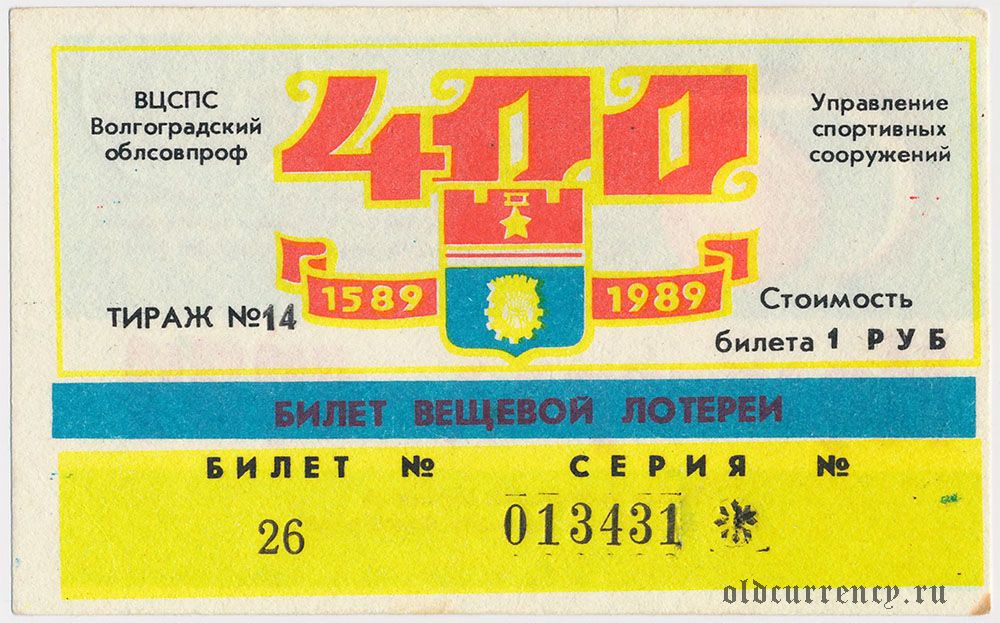 Волгоград, управление спортивных сооружений, вещевая лотерея 1989 года