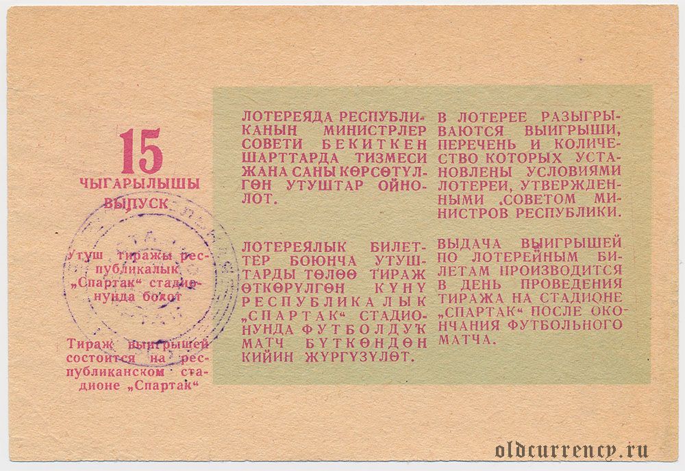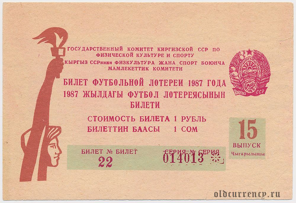 Киргизская ССР, комитет по физкультуре и спорту, футбольная лотерея 1987 года, 15 выпуск