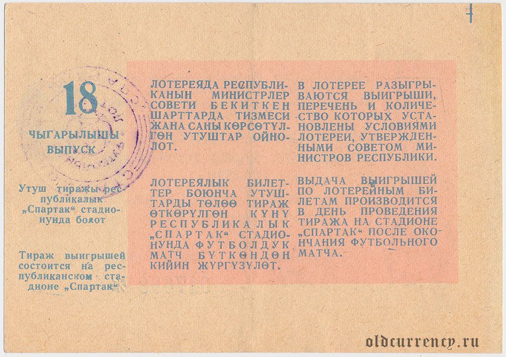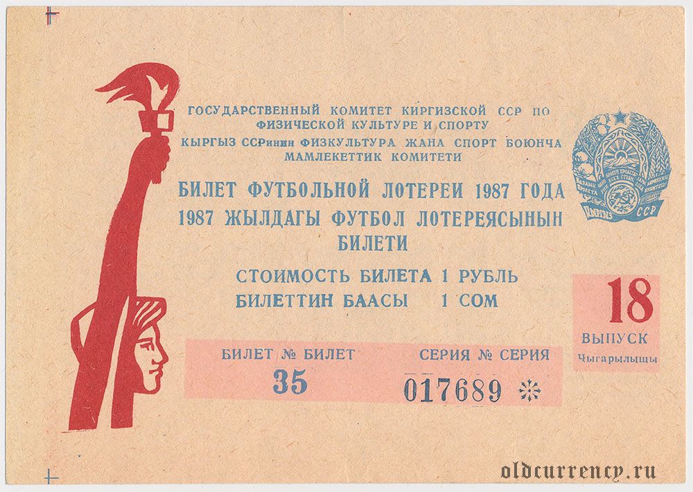 Киргизская ССР, комитет по физкультуре и спорту, футбольная лотерея 1987 года, 18 выпуск
