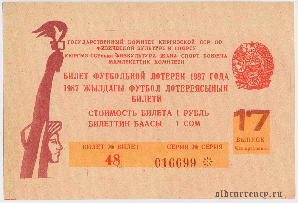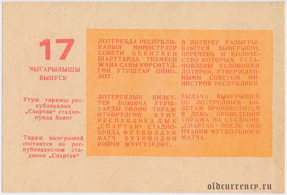Киргизская ССР, комитет по физкультуре и спорту, футбольная лотерея 1987 года, 17 выпуск