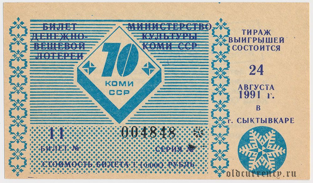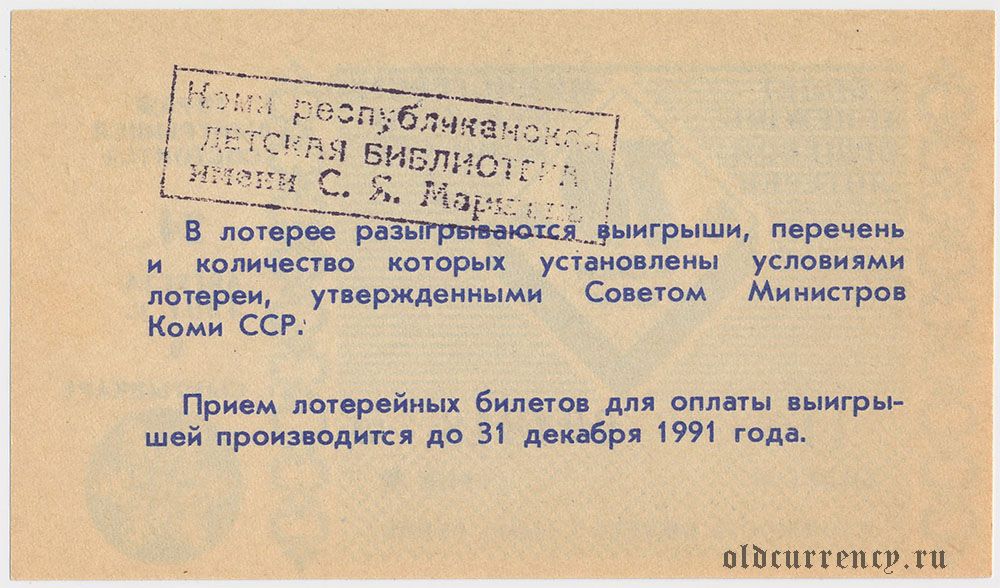 Сыктывкар, министерство культуры Коми ССР, лотерея 1991 года