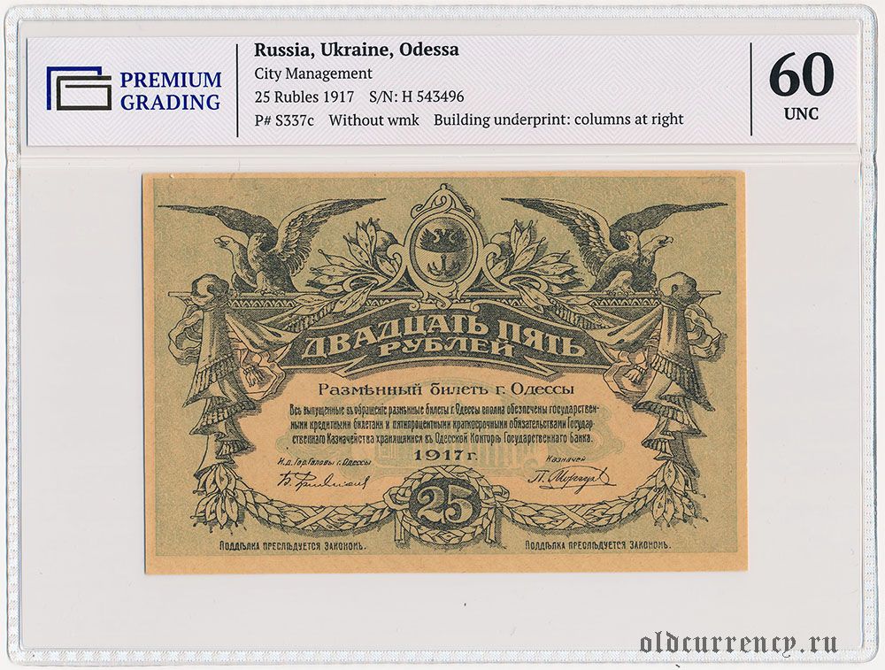 Одесса, 25 рублей 1917 года. Серия: Н. В слабе PG