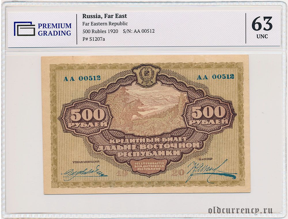 Дальне-Восточная Республика, 500 рублей 1920 года. В слабе PG