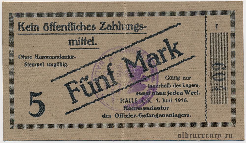 Германия, Halle, 5 марок 1916 года. На ткани