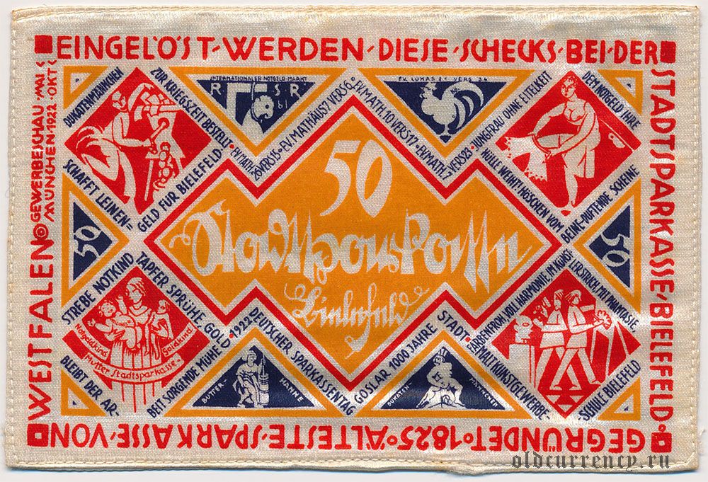 Билефельд (Bielefeld), 50 марок 1922 года. На шелке