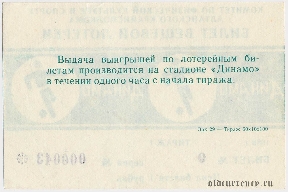 Комитет по физкультуре и спорту Алтайского Крайисполкома, Динамо, 1 тираж
