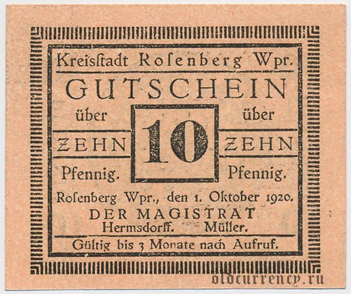 Розенберг (Rosenberg/Susz), 10 пфеннингов 1920 года