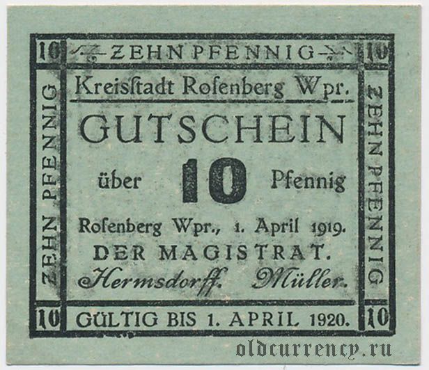 Розенберг (Rosenberg/Susz), 10 пфеннингов 1919 года