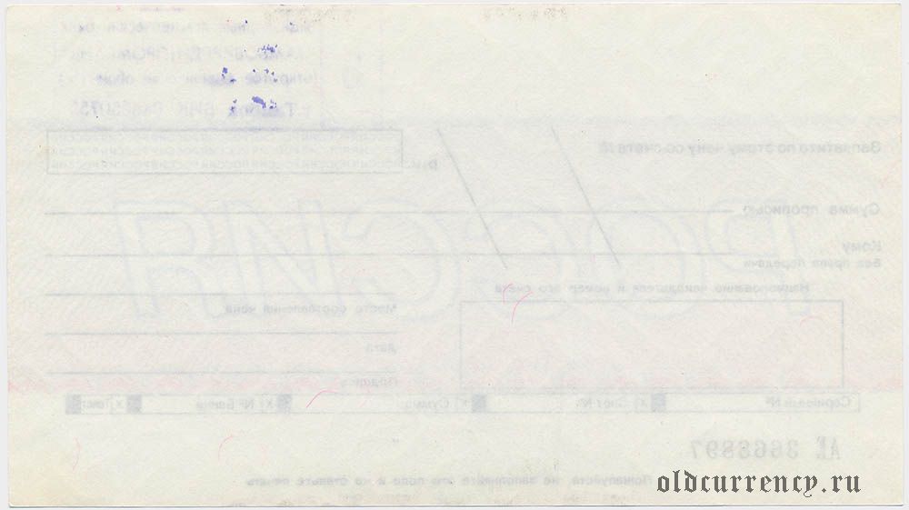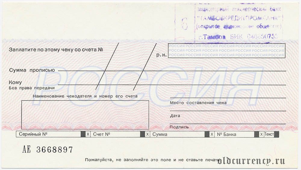 Чек, "РОССИЯ" Тамбовкредитпромбанк