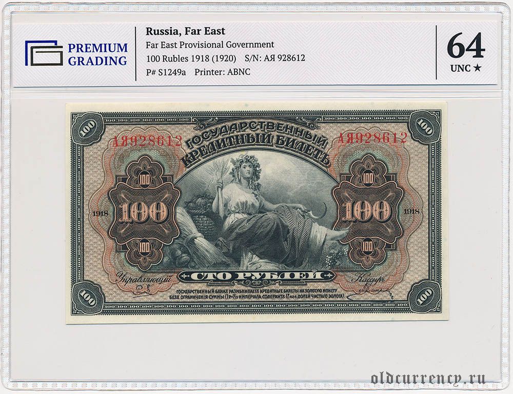 ДВР, правительство Медведева, 100 рублей 1918 года. В слабе PG