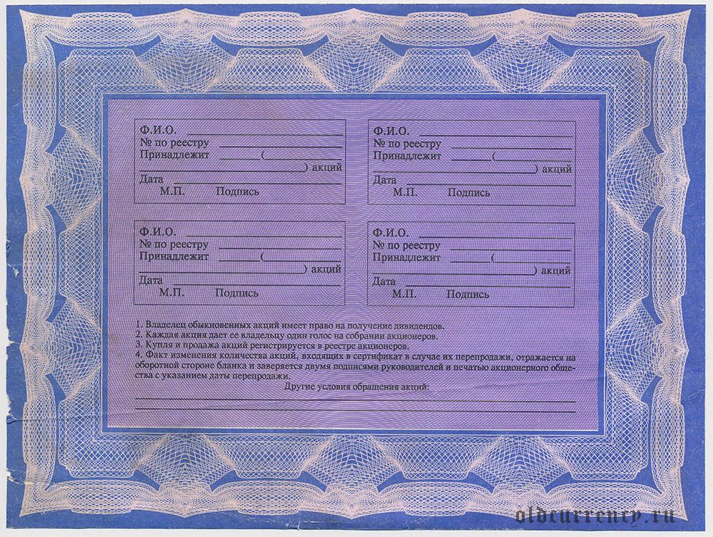 Старая Вичуга, "Красинец", сертификат акций 1992 года