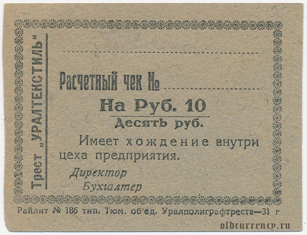 Тюмень, трест "Уралтекстиль", 10 рублей 1931 года