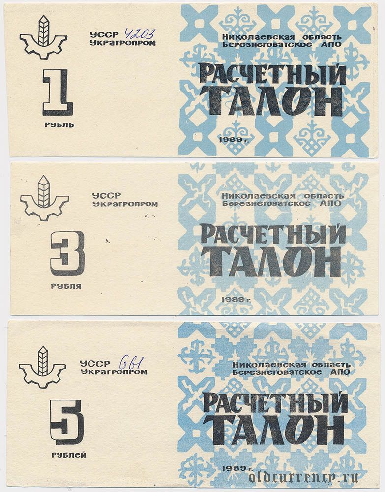 Березнеговатое, Березнеговатское АПО, 3 банкноты 1989 года