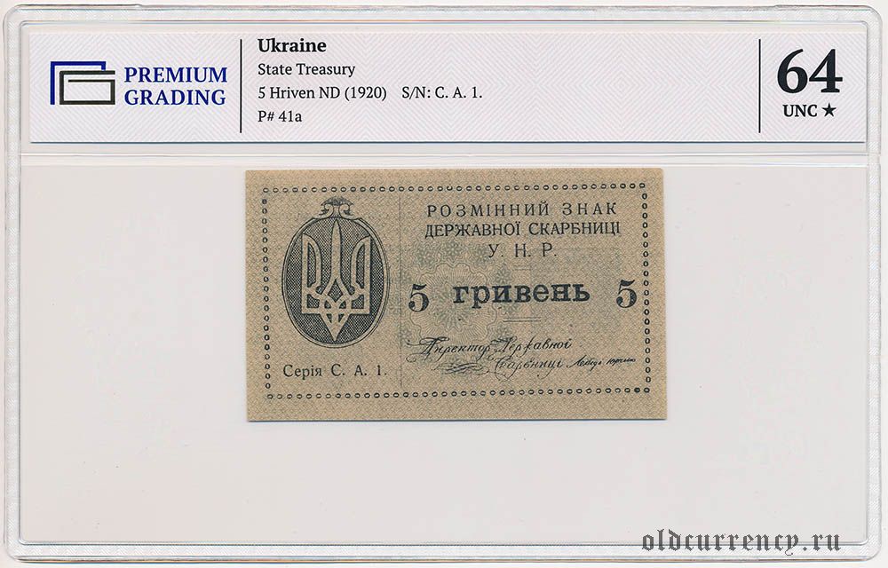 Украина, 5 гривен (1920) года. В слабе PG