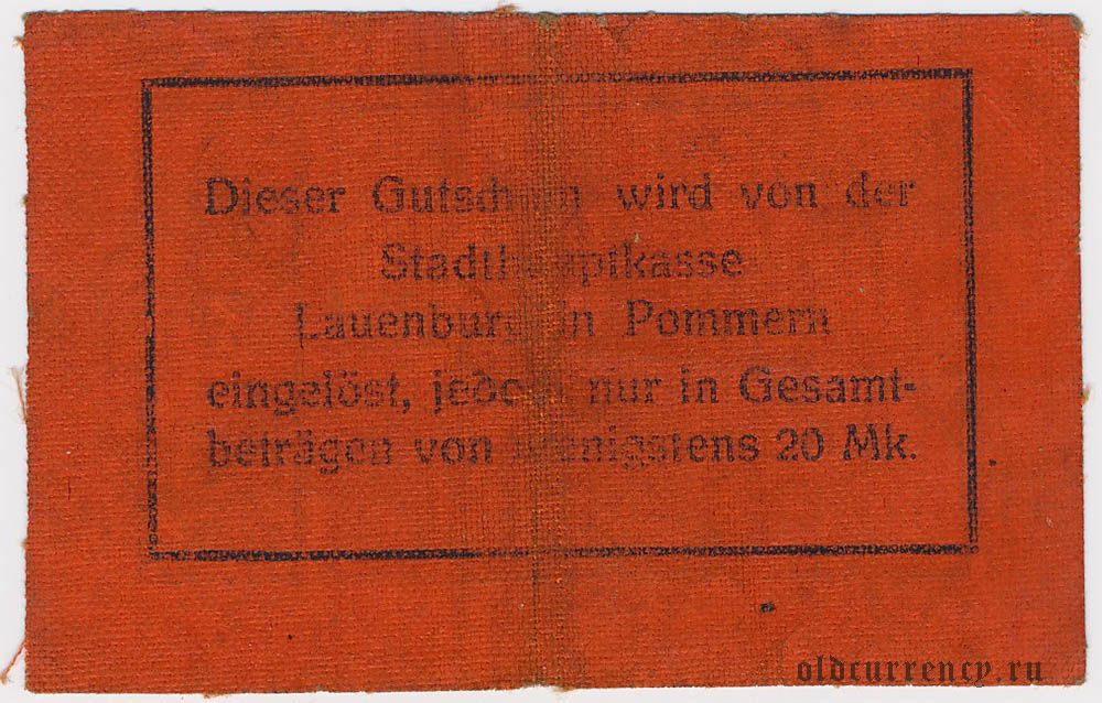 Лауэнбург (Lauenburg), 1 марка 1914 года. На ткани