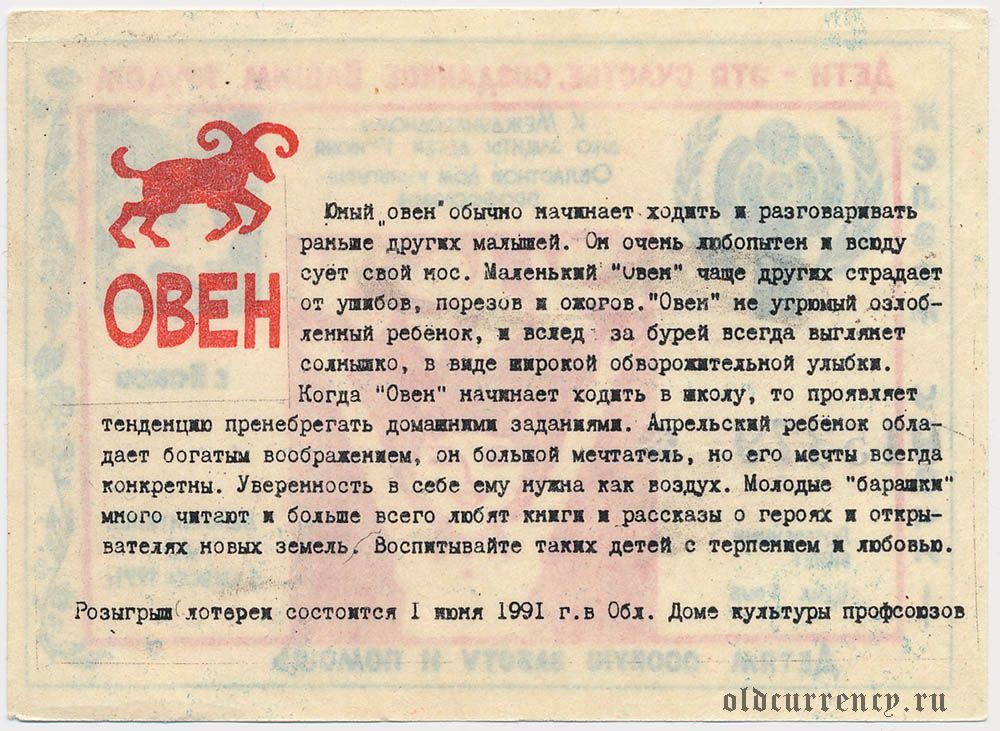 Псков, Международный день защиты детей, лотерея 1991 года, "ОВЕН"