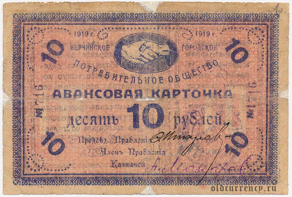 Нерчинск, потребительское общество, 10 рублей 1919 года