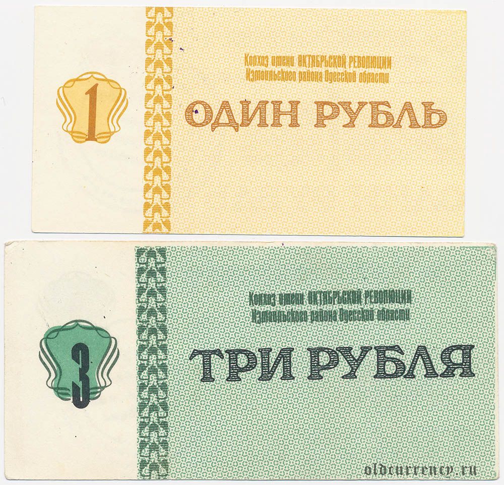 Першотравневое, Измаильский район, Колхоз имени Октябрьской революции, 1 и 3 рубля