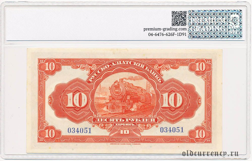 Харбин, Русско-Азиатский банк 10 рублей. В слабе PG