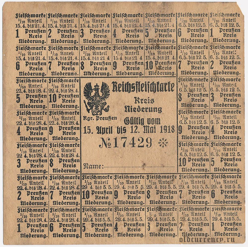 Нидерунг (Niederung), продуктовая карточка на мясо, 1918 год